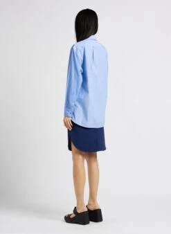 Dit model wordt aangeboden met Blouse van biokatoen met klassieke kraag by LEON & HARPER, Leren slippers met sleehak en bandjes by JONAK