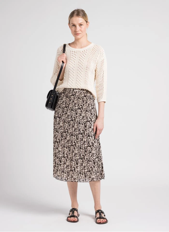 Dit model wordt aangeboden met Vaarsleren schoudertas by SOEUR, 100 katoenen trui met ronde hals by GERARD DAREL, Platte, leren slippers by SOEUR