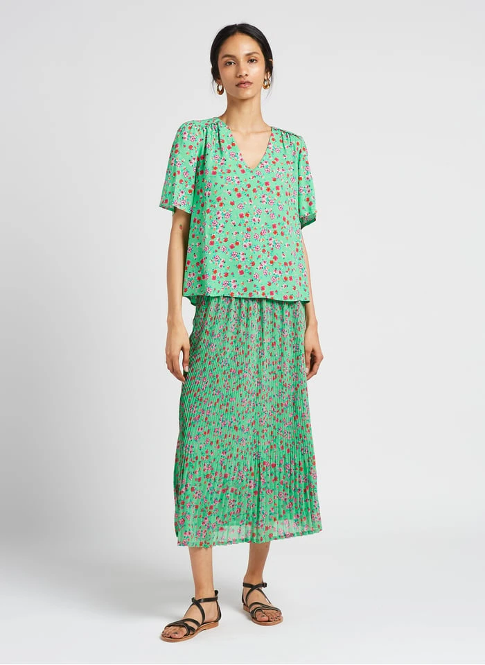 Dit model wordt aangeboden met Top met V-hals en print by GRACE ET MILA