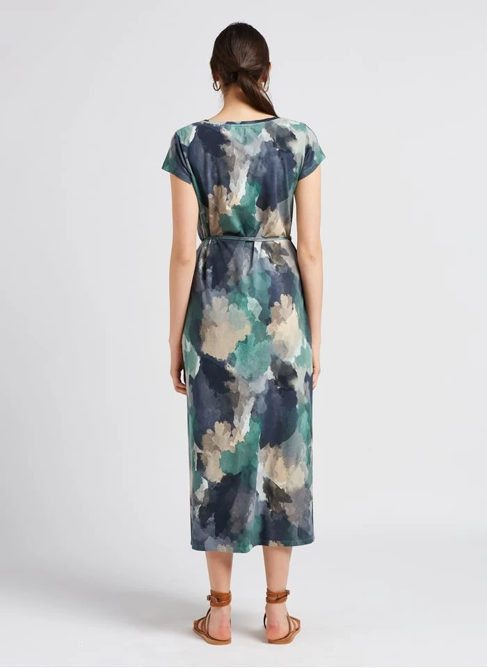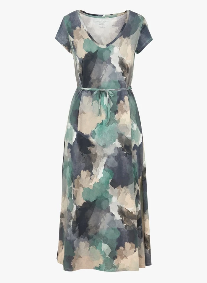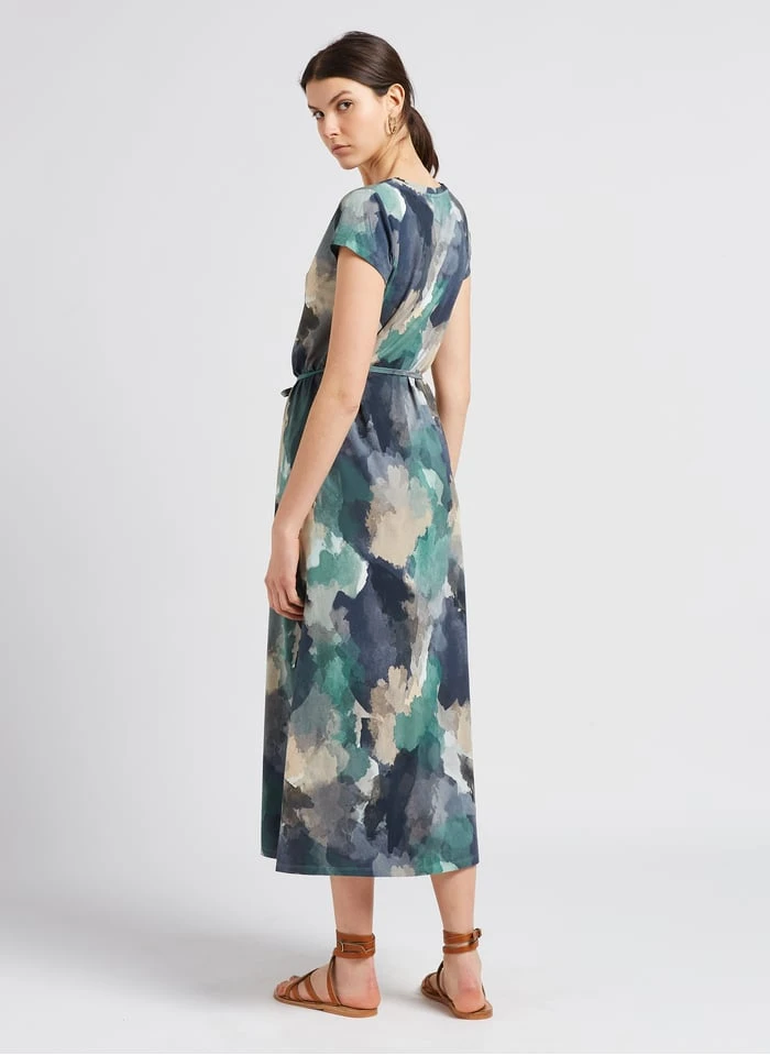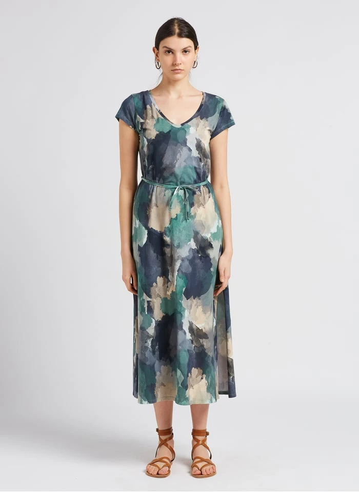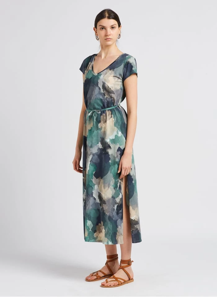 Lange jurk met V-hals en abstract motiefje by Majestic Filatures voor Dames.