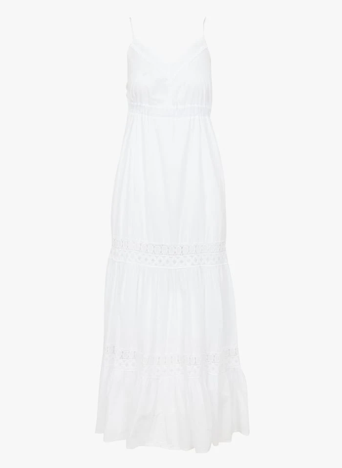 Lange, katoenen jurk met V-hals by La Fée Maraboutée voor Dames.