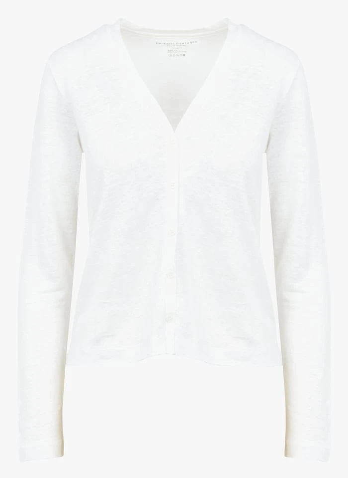 Linnen vest met V-hals by Majestic Filatures voor Dames.