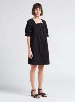 Korte, uitlopende, katoenen jurk met vierkante hals by Maison 123 voor Dames.
