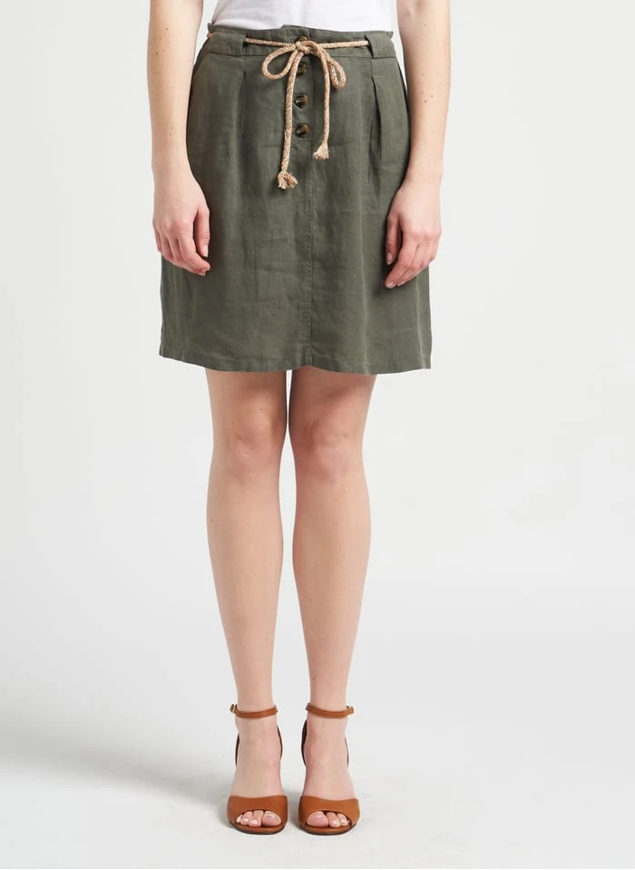 Dit model wordt aangeboden met Uitlopend, linnen T-shirt met V-hals by ONE STEP