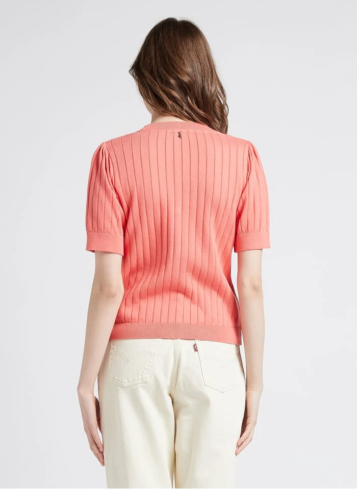 – Finition bords-côtes au col, manches et buste