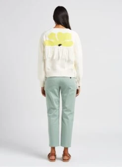 Dit model wordt aangeboden met Strakke trui met ronde hals by PAUL SMITH, Rechte 7/8-broek van biokatoen by PAUL SMITH, Platte, gladde, leren sandalen by CHIE MIHARA