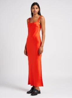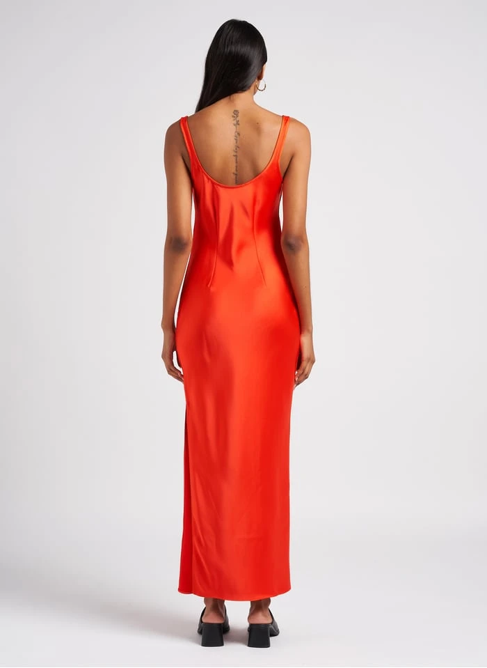 Lange jurk met split en satijnglans by Samsoe samsoe voor Dames.