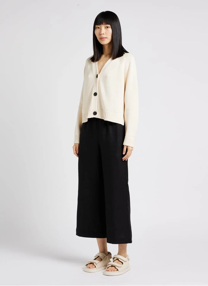 Dit model wordt aangeboden met Rechte, linnen, 7/8-broek by WHISTLES, Platte, leren sandalen by ALOHAS