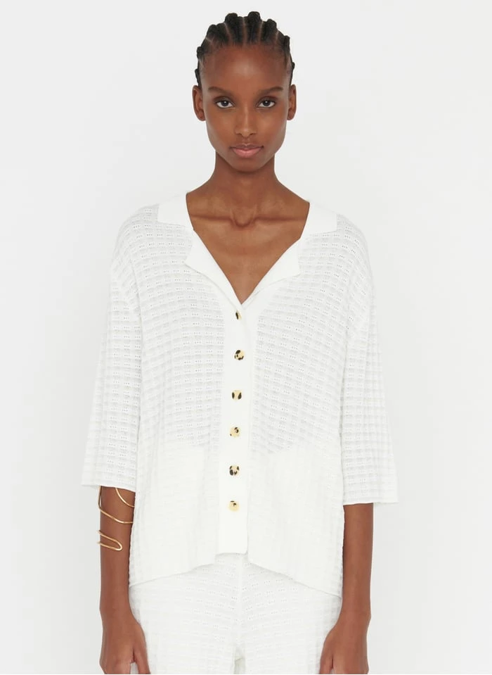 – Détails côtelés sur le col et sur la patte de boutonnage